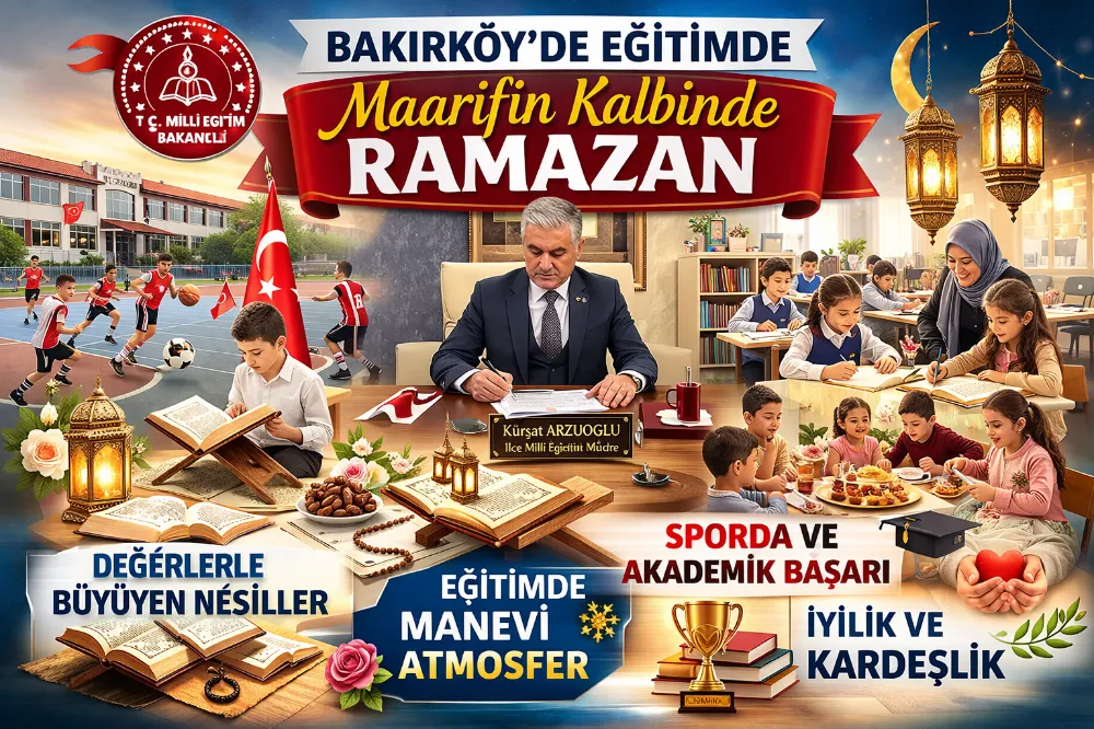 HABER: NEZİR KARAYÜN / EĞİTİMDEN HABERLER - Bakırköy İlçe Milli Eğitim Müdürü Kürşat Arzuoğlu, Ramazan ayı etkinliklerinin “Maarifin Kalbinde Ramazan” temasıyla ilçedeki okullarda devam ettiğini açıkladı. Çalışmalar, erdem, değer ve eylem temelli eğitim anlayışıyla yürütülüyor.