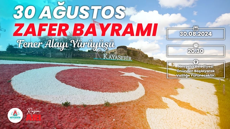 Nevşehir Belediyesi tarafından 30 Ağustos Zafer Bayramı’nın 102’nci yıl dönümü dolayısıyla Fener Alayı Yürüyüşü düzenlenecek.