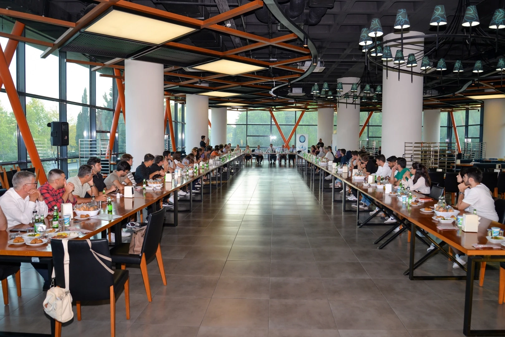 BURSA (İGFA) - BUÜ Teknofest Kurum Koordinatörlüğü tarafından düzenlenen programda yarışlarda finallere kalan takım üyeleri ile üniversite yöneticileri buluştu. Düzenlenen yemekli organizasyona BUÜ Rektörü Prof. Dr. Ferudun Yılmaz, Rektör Yardımcıları Prof. Dr. Cafer Çiftci, Prof. Dr. Zekeriyya Arı, fakülte dekanları, akademik ve idari personel ile öğrenciler katıldı.