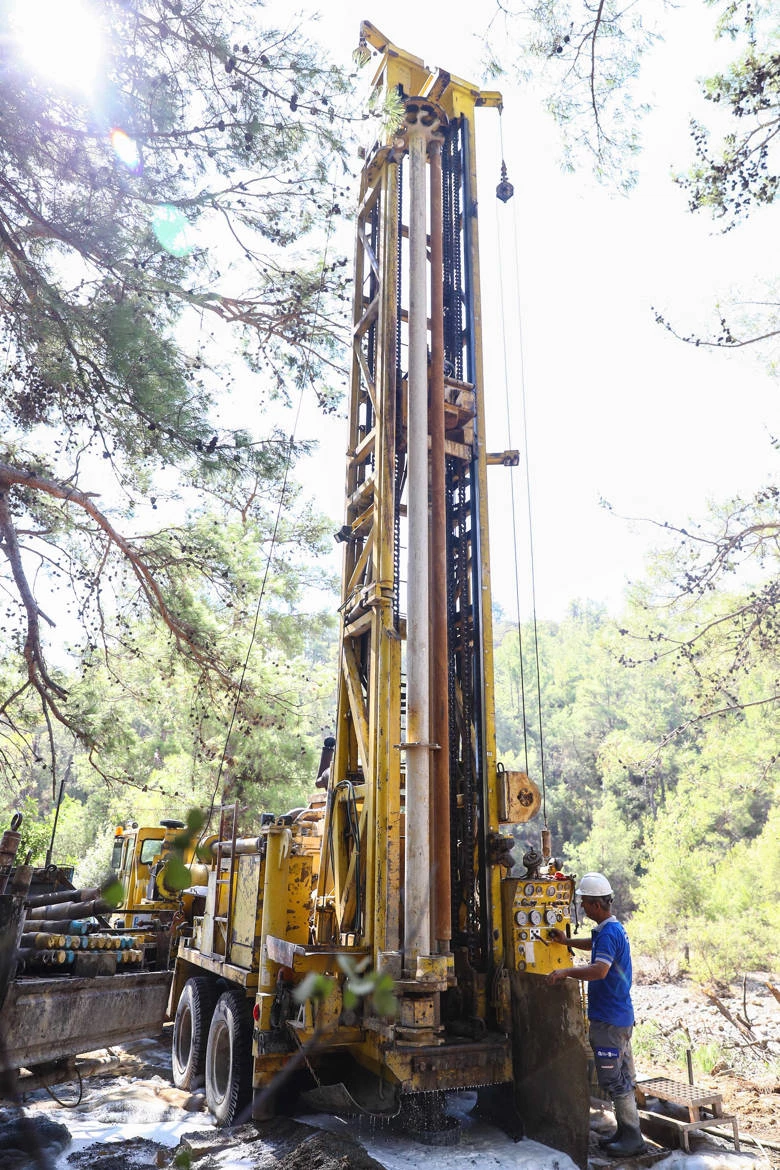 Antalya Büyükşehir Belediyesi ASAT Genel Müdürlüğü, kurak geçen yaz aylarında içme suyu sıkıntısının yaşandığı Kemer ilçesine bağlı Tekirova Mahallesi'nde sondaj çalışmaları gerçekleştiriyor.